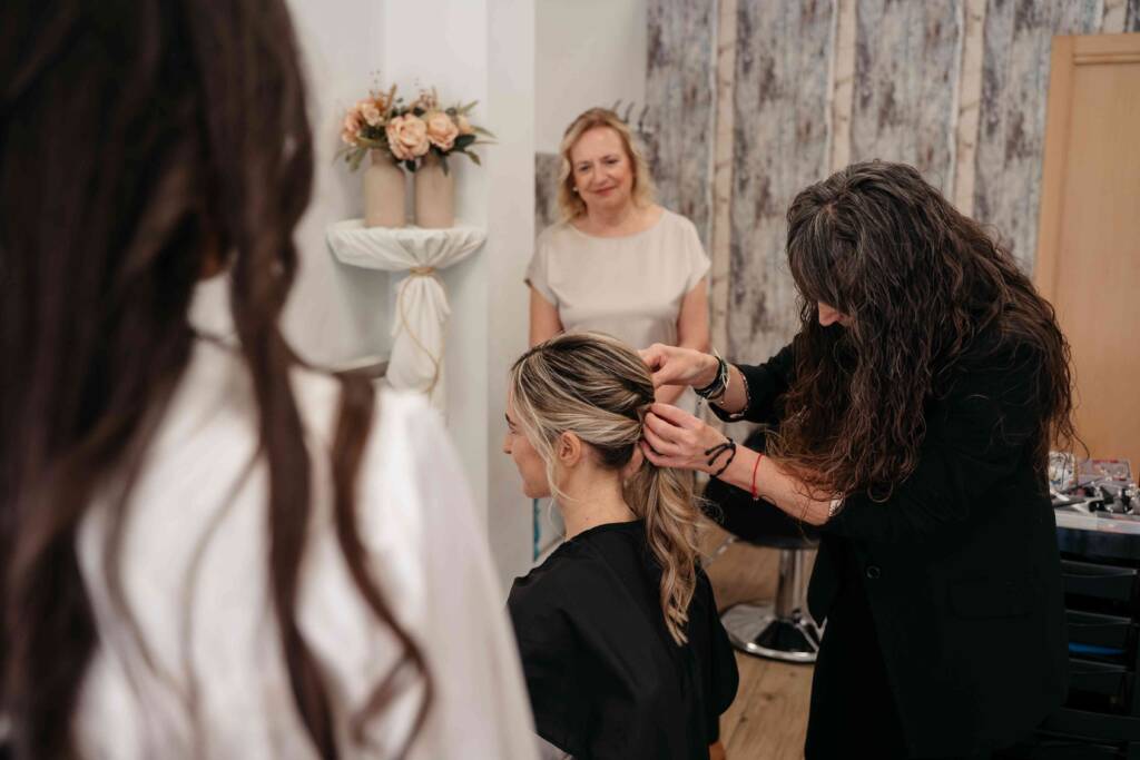 Realizo peinados personalizados para bodas con una atención totalmente centrada en ti y en tu entorno más cercano.